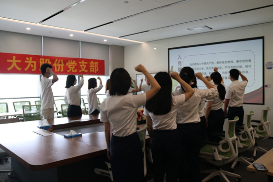 重温入党誓词,公司党支部书记陈卉佳同志带领全体党员重温入党誓词,回顾入党宣誓时的庄严承诺和坚定决心, 引导党员坚定理想信念,牢记初心和使命。