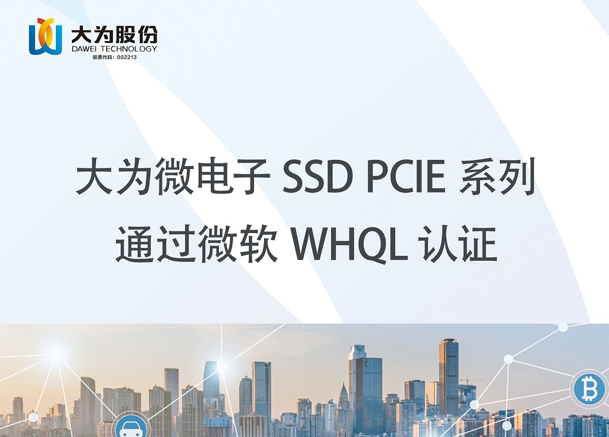 乐天使微电子存储产品DAWEI MICRO SSD PCIE系列经过微软中国技术中心的各项严格测试,在2022年7月7日正式通过了微软WHQL认证。