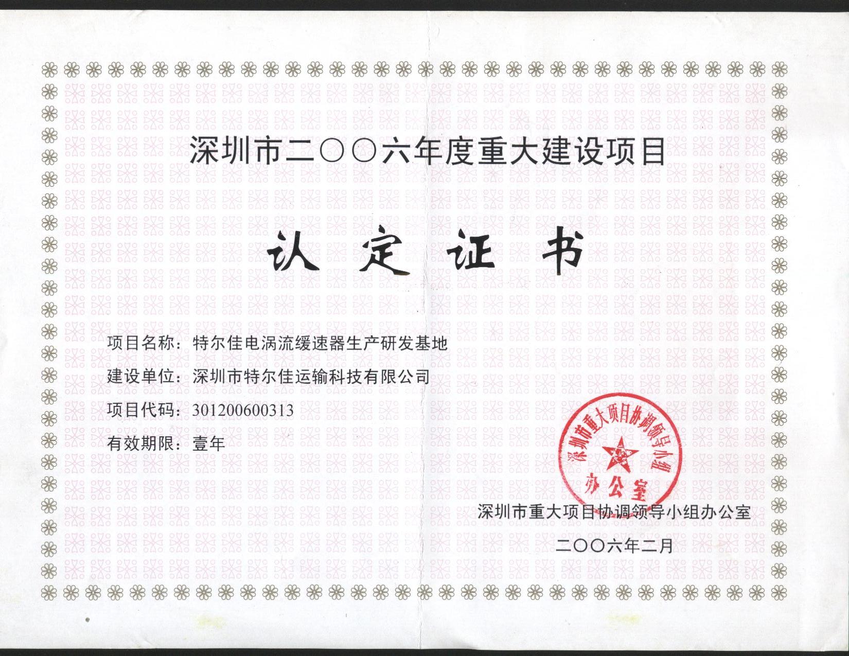 深圳市2006年度重大建设项目